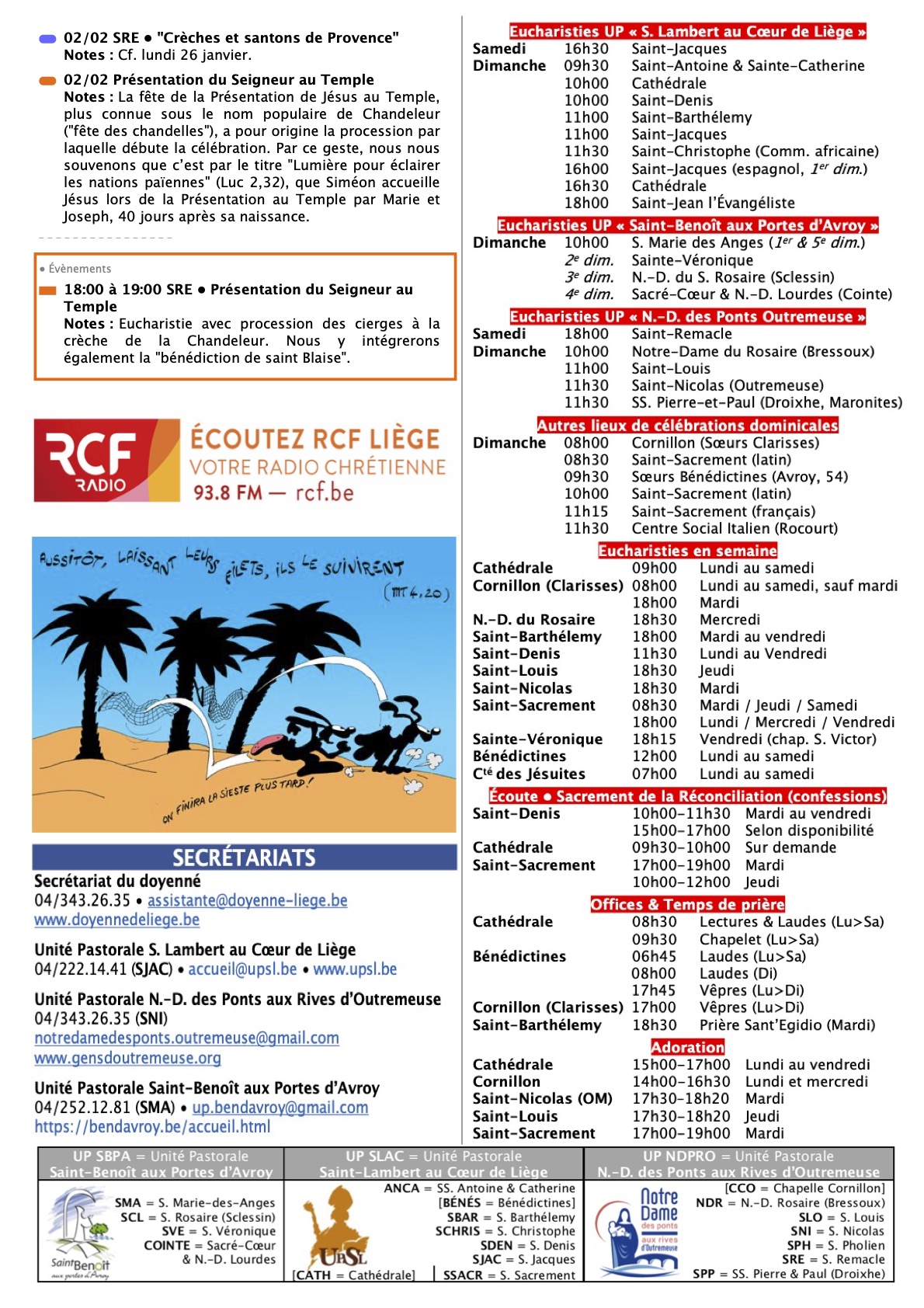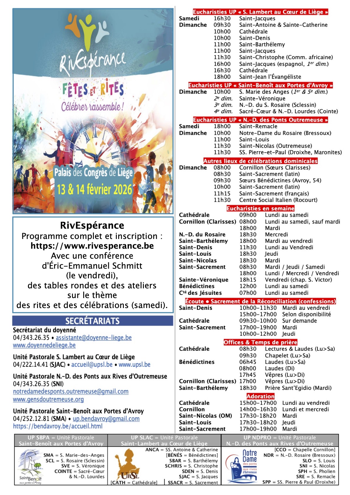 L’unité pastorale Notre Dame des Ponts aux rives d’Outremeuse, est constituée des communautés paroissiales, étrangères et religieuses de la rive droite de la Ville de Liège